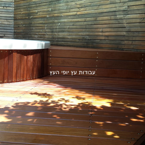 פרויקט באולם צל החורש כפר סבא.התקנת דק איפאה,חיפוי קירות מעץ איפאה,חיפוי בר מעץ איפאה כולל דלפק מעץ בוצ'ר אלון,חיפוי מעץ איפאה של עמדת די ג'יי וחיפוי סאב וואפר מעץ איפאה.